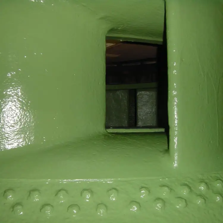 - رنگ اپوکسی گلس فلیک پلیآمین: این نوع با هاردنر پلی آمین تولید می شود و زمان پخت کوتاه تر و سختی نهایی بالاتری دارد. پوشش های پلیآمینی معمولاً مقاومت شیمیایی و حرارتی بالاتری ارائه می دهند و برای محیطهای خورنده و صنعتی با نیاز به مقاومت بالا مناسب تر هستند.